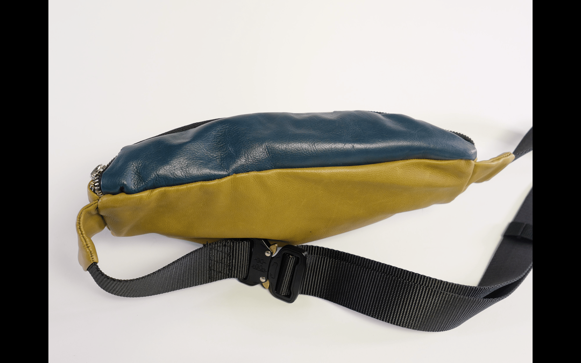 BOSCO PARIS – Sac banane en cuir d’agneau vert olive et bleu